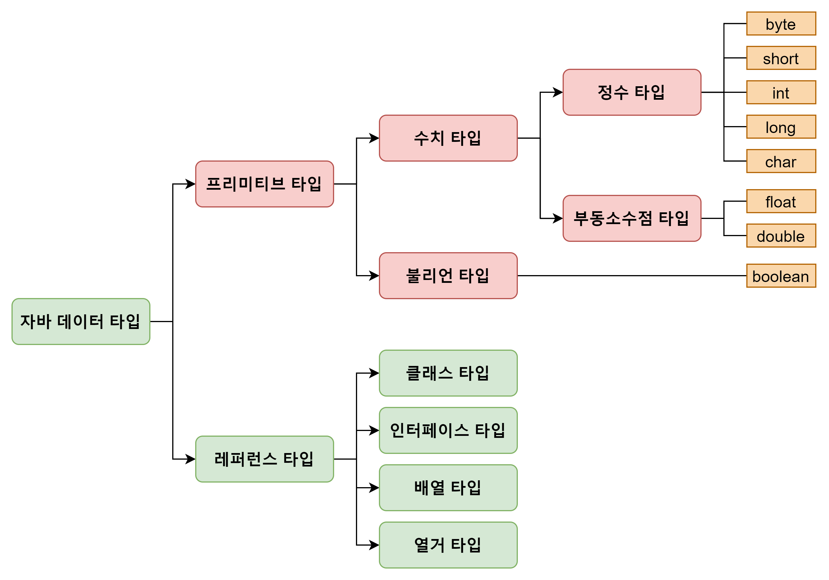 - 배열(array[]), 열거(enum), 클래스(class), 인터페이스(interface) 등