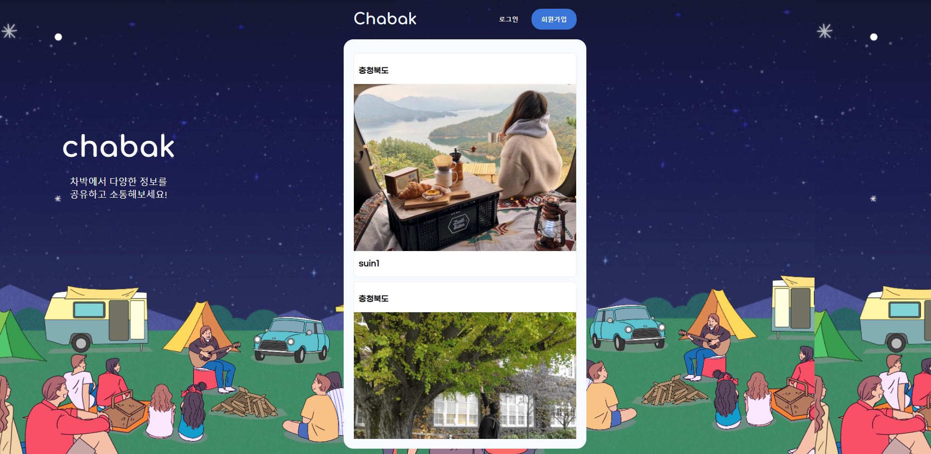 다양한 차박 장소들을 사진, 지역과 글을 통해 공유할 수 있습니다👍