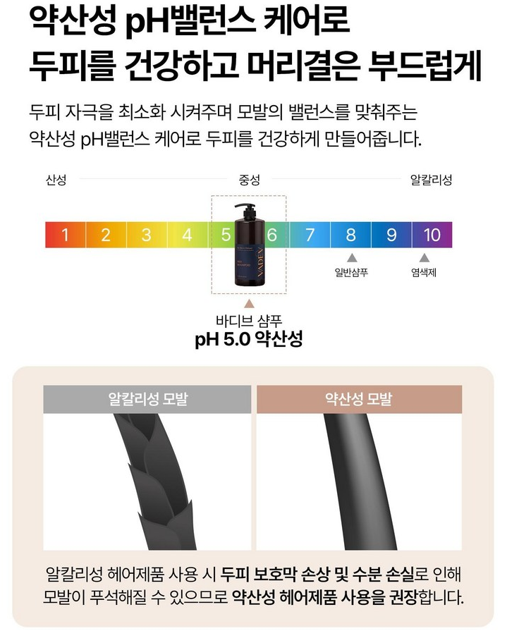 일반적으로 우리의 두피는 약산성(pH 4.5~5.5)을 유지해야 건강합니다.
