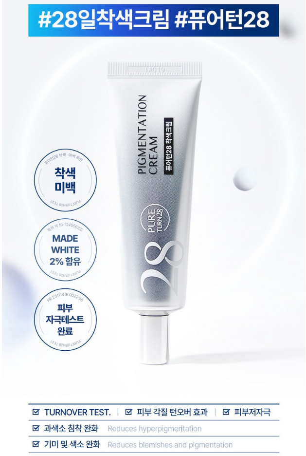 퓨어턴28 미백크림은 착색 문제로 고민하는 분들에게 효과적이고 안전한 해결책을 제공합니다.