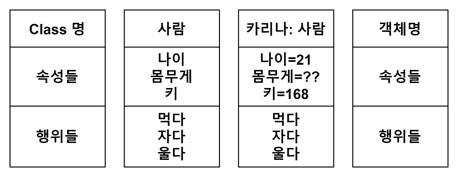 객체(Object)의 사전적인 정의는, '실제로 존재하는 것'이다.